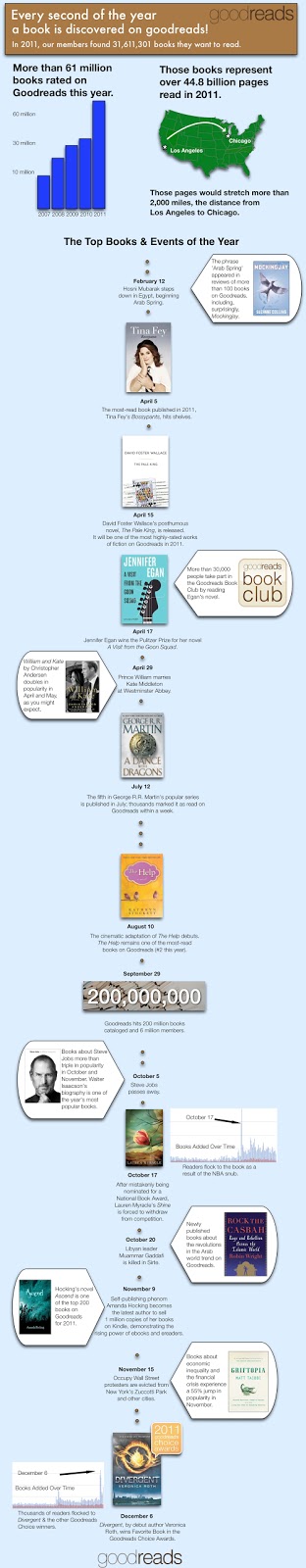 Goodreads Year in Books in Review Jeff Yasinchuk Uncategorized December 15, 2011October 6, 2017 1 Minute A very powerful Infographic from the folks at Goodreads. Share this: Click to share on X (Opens in new window) X Click to share on Facebook (Opens in new window) Facebook Click to share on LinkedIn (Opens in new window) LinkedIn Click to email a link to a friend (Opens in new window) Email Click to print (Opens in new window) Print Related Published by Jeff Yasinchuk Sometimes the bravest and most important thing you can do is just show up. ~Brene Brown, PhD. View all posts by Jeff Yasinchuk Published December 15, 2011October 6, 2017